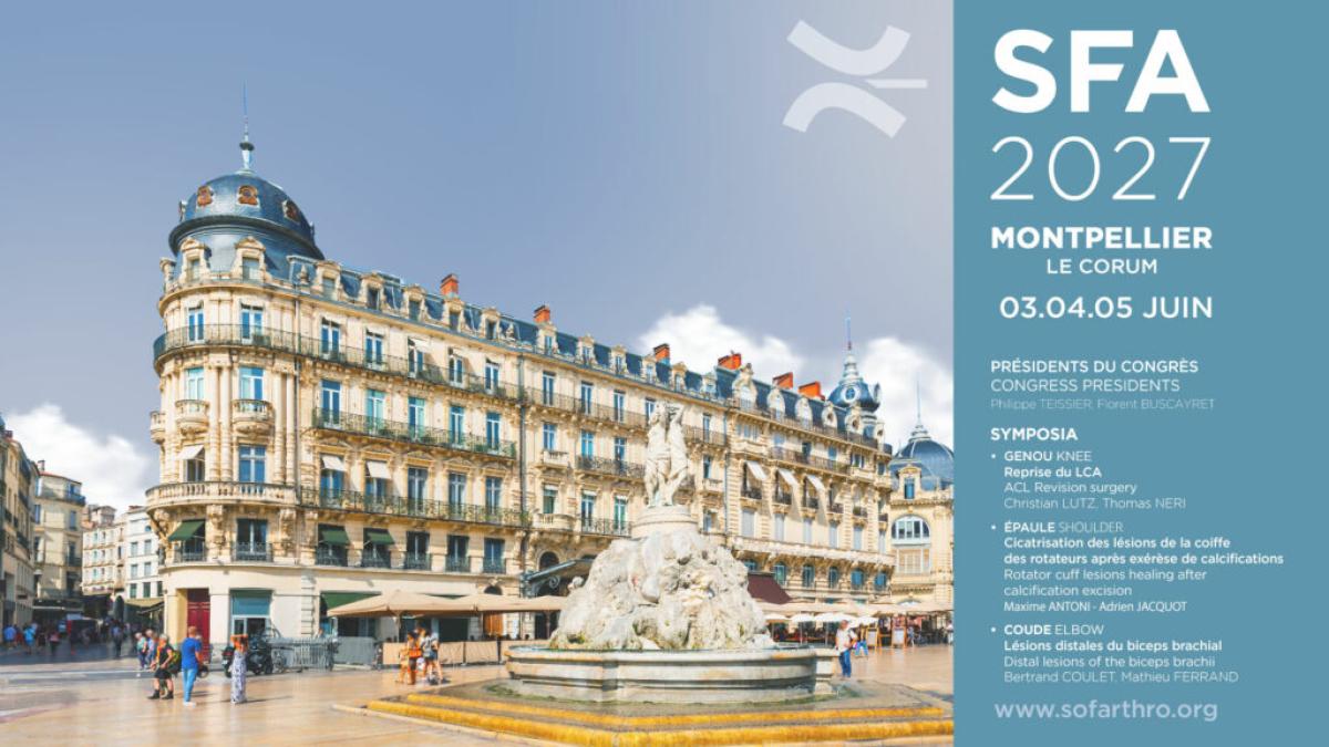 Société mise à l’honneur : la SFA (Société Francophone d'Arthroscopie) Nation invitée : Italie - SIOT Sociétés internationales invitées : AAHKS, AO Recon, APOA, EKS, Esska, IHS, JOA